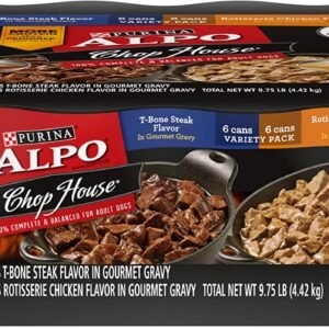 - Twelve (12) 13 Oz. Can, Purina Alpo Chop House T-Bone Steak & Rotisserie Chicken Flavor Adult Wet Dog Food Variety Pack