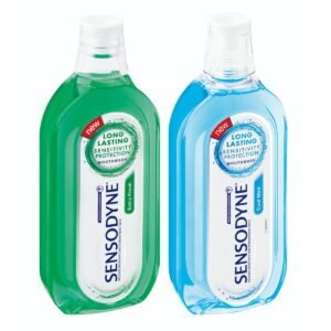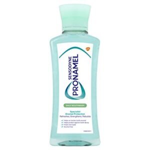 teeth. Sensodyne mouthwash contains fluoride to help remineralise enamel and prevent